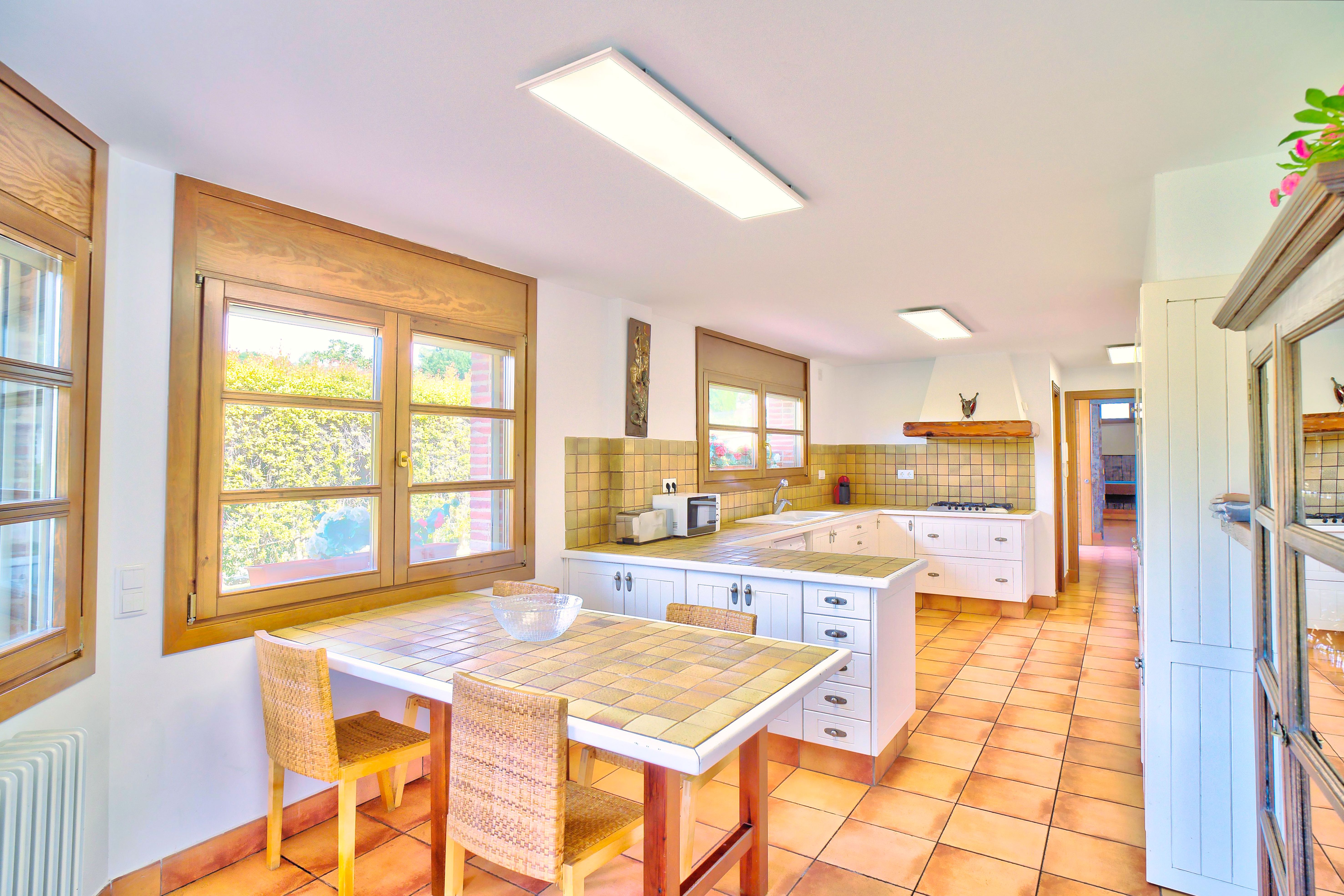 The kitchen is full equiped, and the house disposes of 3 bathrooms with shower and 2 toilettes, a big living room with chimney, a 4 meters table, 3 sofas, TV, DVD and Wii.