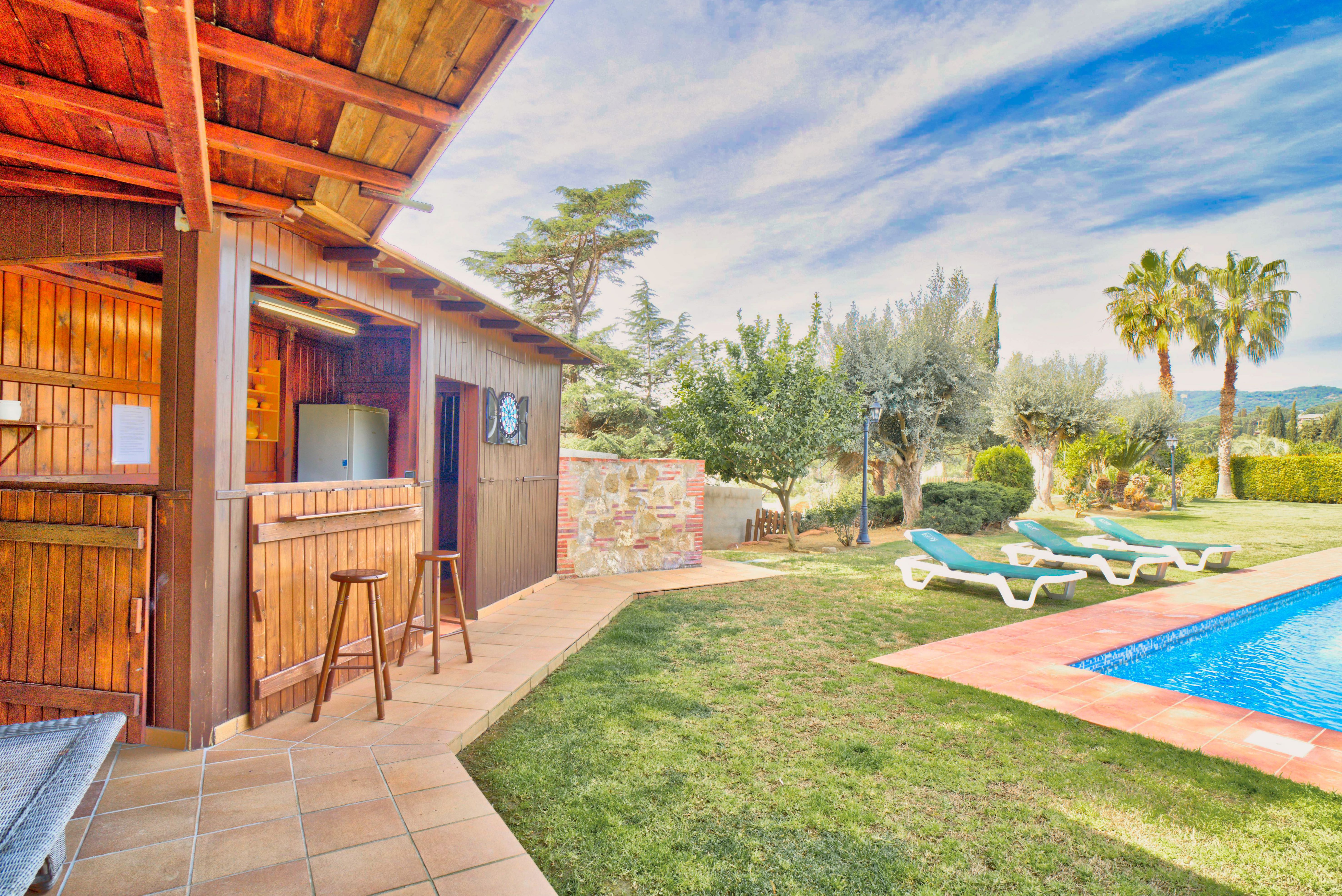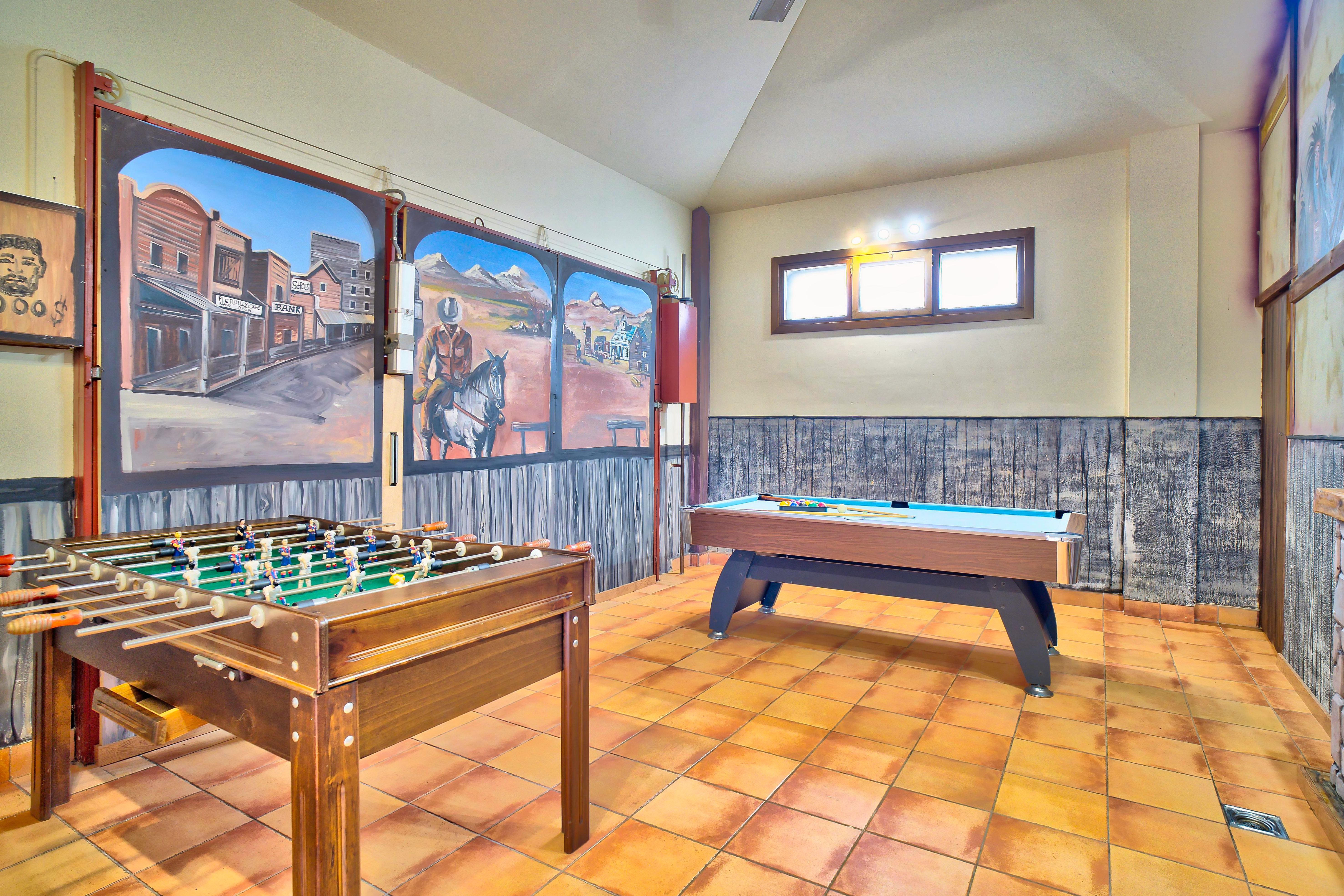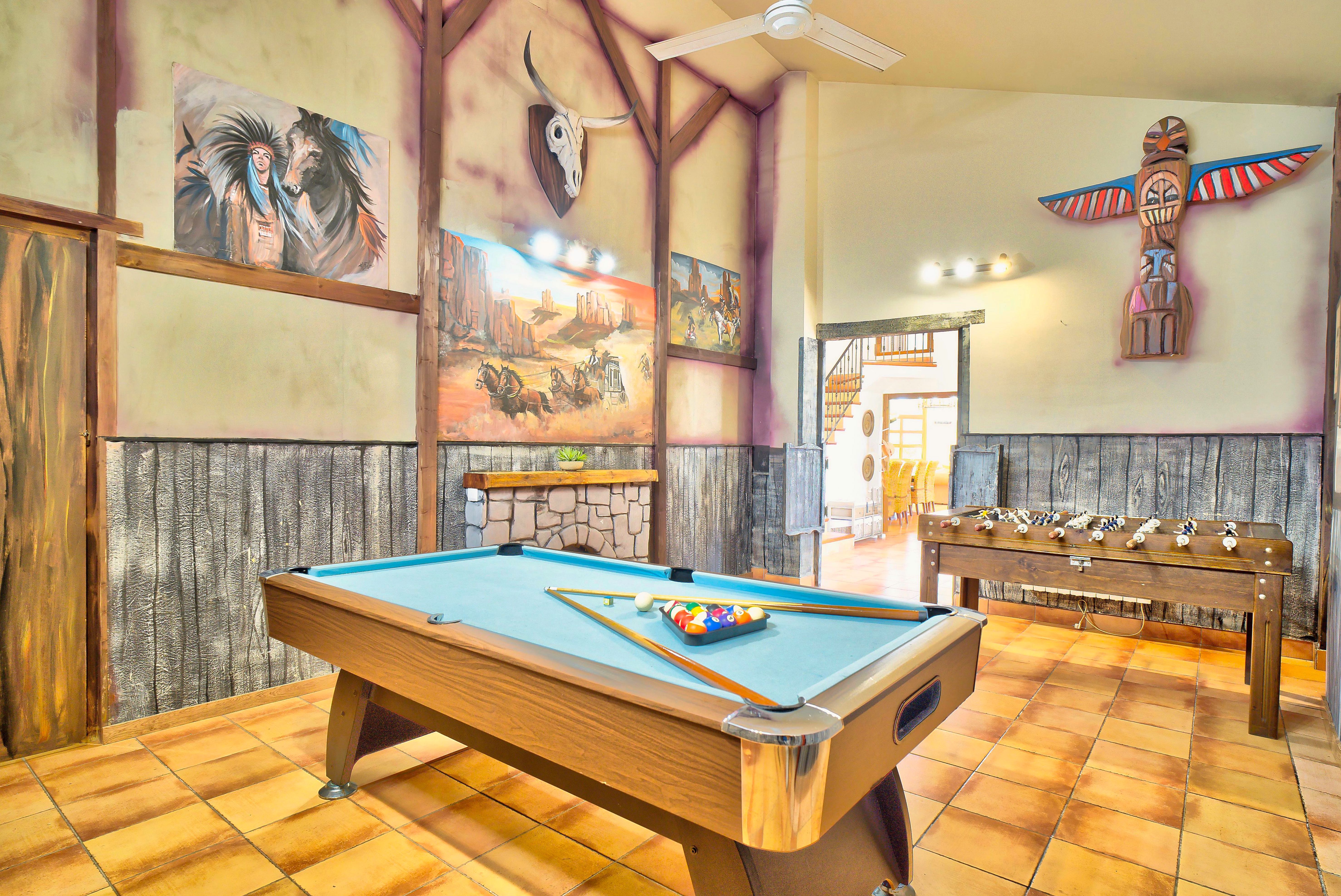 The house has 340 m2 which is in a terrain of 2.000 m2 distributed in 5 rooms with air conditioning from June to September, one of them is a themed room with egyptian decoration, a far western decorated game room with billiards and football table.