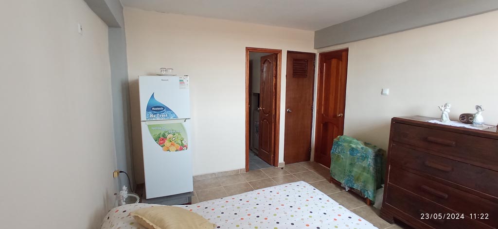 El edificio consta de 8 apartamentos, 2 apartamentos por plantas, encontrándose éste en 3º y último piso. Consta de balcón amplio a la calle, sala comedor, cocina, 2 dormitorios, uno con closed amplio empotrado y un closed pequeño en cada dormitorio, 1 baño intercalado y patio de servicio techado con lavadero. Área útil 59.78 M². Posee calentador de gas de encendido automático con presurizador, suministrando agua caliente a cocina y baño.Electricidad de 110 V y 220 V con todo el cableado nuevo y caja de braker de distribución. Plomería nueva completa, pisos nuevos en toda la casa con algunas losas de repuesto. Puertas y ventanas de hierro muy seguras. Un tanque de 1200 litros en azotea de uso particular y dos tanques grandes del edificio, cisterna y turbina.