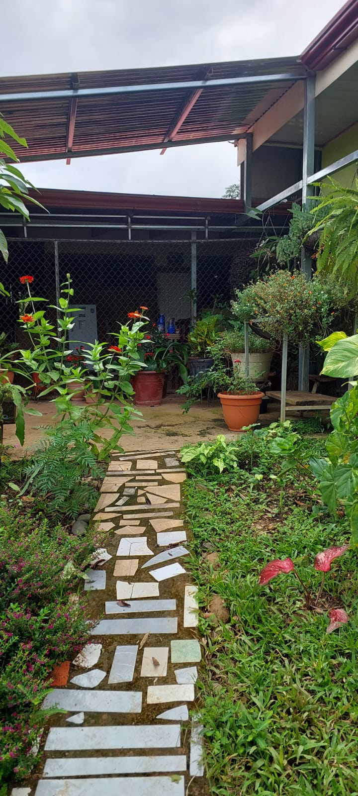 * House with five bedrooms, 3 full bathrooms, large kitchen, living room, laundry area, warehouse, covered garage for 3 vehicles.
